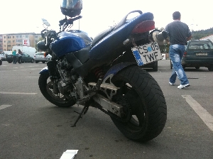 Honda Hornet CB600F, 1.400 EUR ITP valabil pana in 05.2012; motor tip PC25E. A fost trantita pe partea stanga si are rezervorul indoit, zgarieturi pe capacul ambreiajului si proiectoare. Dupa accident am inlocuit radiatorul cu unul de CBR si am facut un drum Romania-Elvetia si retur si functioneaza ireprosabil. O puteti vedea la http://www.youtube.com/watch?v=XGkIdPrvP4A, data fabricatiei: 4/2001, kilometraj: 30000, putere maxima: 98 CP,