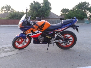 Vand Honda CBR 125R, anul fabricatiei 2005, km parcursi 45.000, capacitatea cilindrică 125 cc, consum 3 l/100km, 14 HP, stare buna.