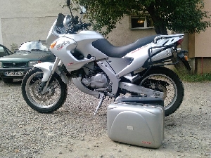 Aprilia Pegaso Garda Capacitate cilindrica: 650 cm3 Culoare argintie - metalica BONUS: + genti laterale din aluminiu fabricate pentru acest model + stender de mijloc + optiunea de a modifica inaltimea motocicletei