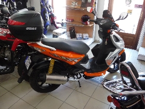 ocazie, anul fabricatiei 2009, km parcursi 2.100, capacitatea cilindrică 50 cc, consum 3 l/100km, culoarea portocaliu metalizat, stare impecabila.